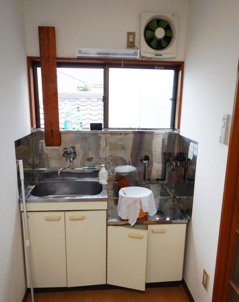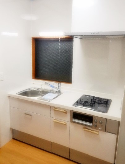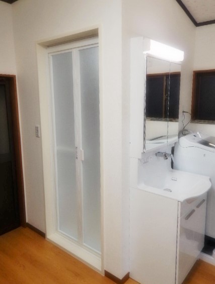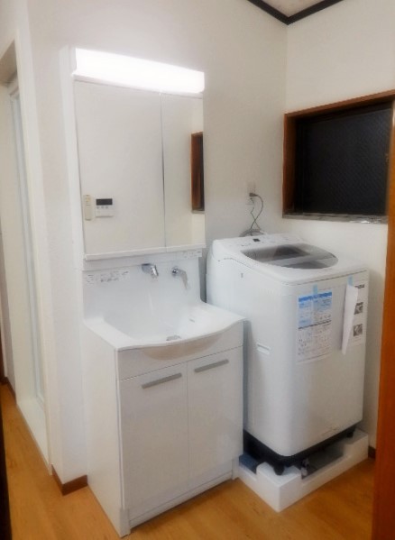 キッチンの移動とバランス釜のお風呂からユニットバスに変更をし、既存のキッチンを解体したスペースに洗面化粧台と洗濯機パンを新設しました。