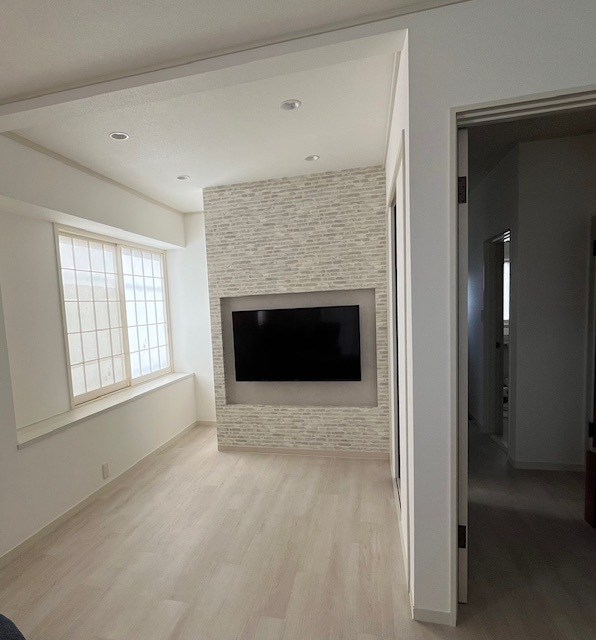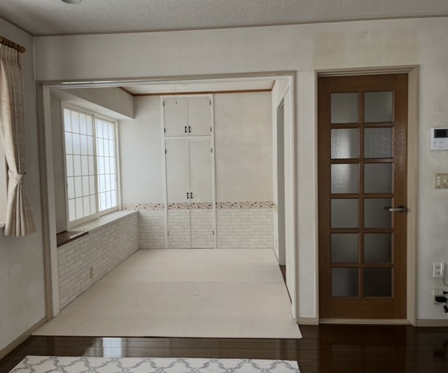 - 和室とリビングをつなげて洋室に変更しました。 クロスも全面張替えを致しました。 白いレンガ調クロスがアクセントの造作棚の設置で雰囲気が一新。お部屋の雰囲気に合わせてリビングの扉も交換し明るくゆとりある住空間に生まれ変わりました!