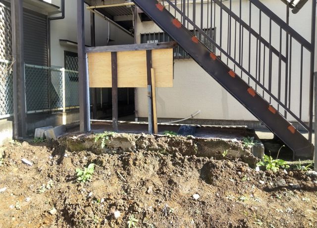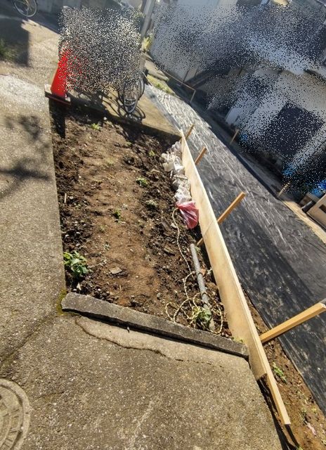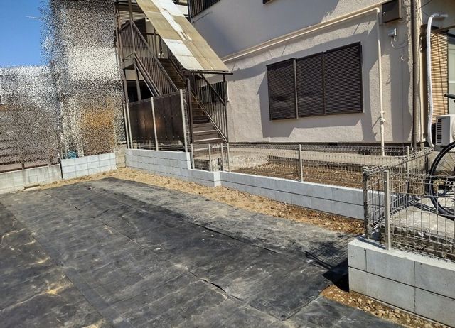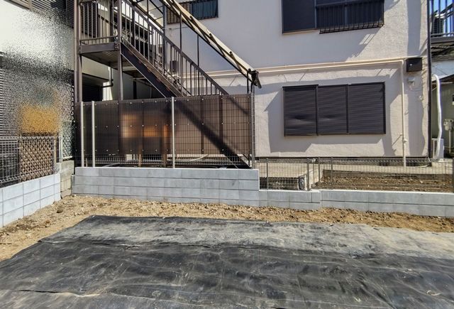 - 境界線にブロック2,3段階のみまたはブロック+格安フェンス設置を検討中です。 アパート側は隣地高低差があるため、土留め+波板フェンス等を検討中です。