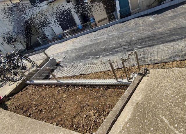 - 境界線にフェンスを新設しました。敷地を囲むように完成したメッシュフェンスは、しっかりと敷地の境界を明確にしながらも、周囲を見渡せる開放感があり、防犯性が向上しました。