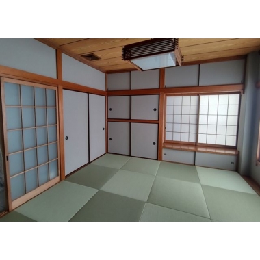 和室の土壁をクロスに張替えと縁なしビニール畳に入替えました。