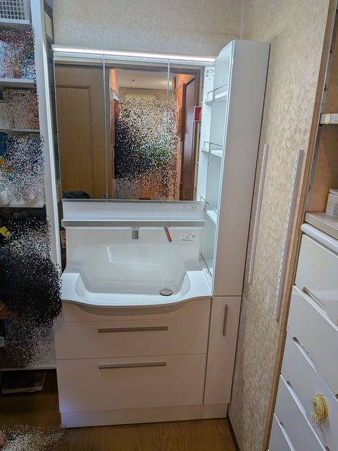 洗面化粧台サイズダウンとトールキャビネットで収納たっぷり